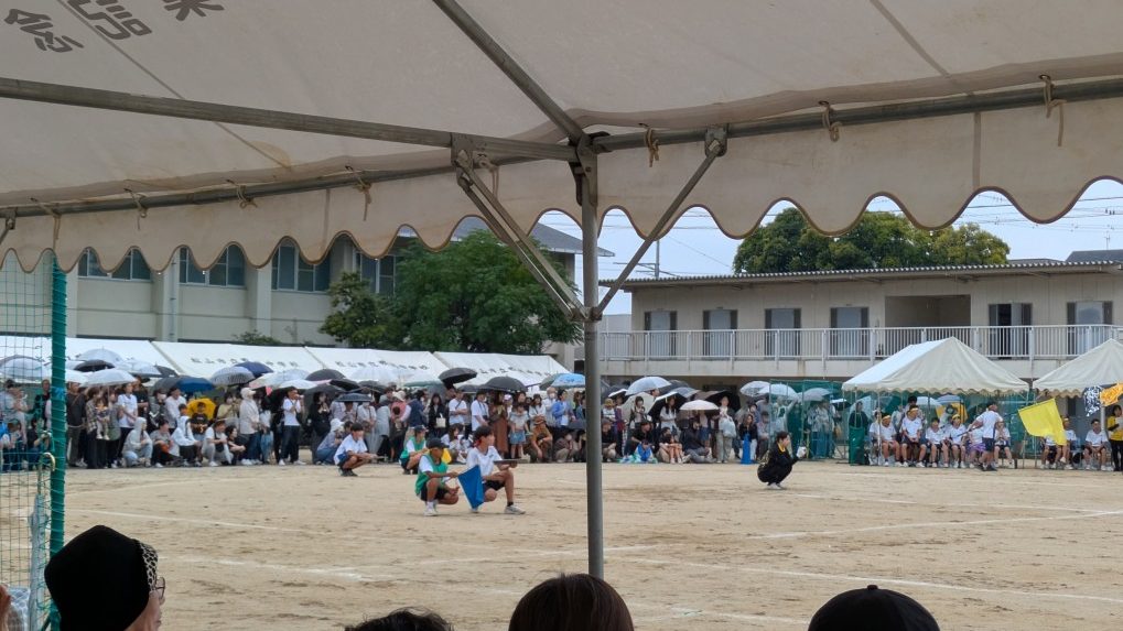あいにく時折小雨のぱらつく天候ではありましたが、全学年が協力するブロック対抗種目に、応援にも熱が入っていました。